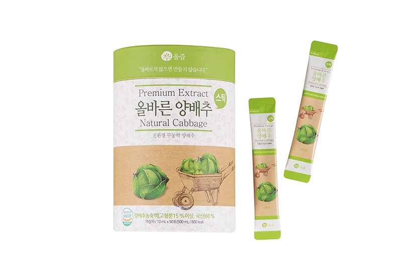 | 原材料及び含有量 | キャベツ濃縮液 (固形分 15以上, 無農薬 認証,韓国産)60%, デキストリン, パイ ナップル 濃縮液, 大宝植物混合濃縮液 [ナツメ(韓国産), トウ(韓国産), キバナオギ(韓国産)、 熟地黃, センキュウ, 甘草, 白朮, 白芍藥, 白茯苓, シナモン、乾ショウガ、精製水], リンゴ濃縮液 |