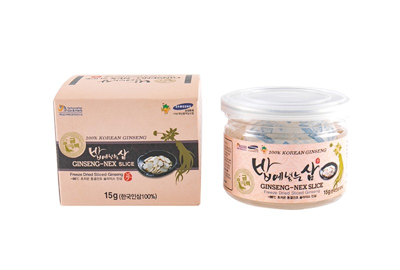 | Thànhphầnnguyênliệu | Nhân sâm sấy thăng hoa 100%(4 năm tuổi trở lên, xuất xứ Hàn Quốc) |