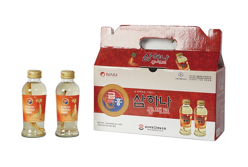 | Thànhphầnnguyênliệu | Hồng sâm(4 năm tuổi trở lên, xuất xứ Hàn Quốc) 1 củ, nước ép hỗn hợp(linh chi(xuất xứ Hàn Quốc), đại táo(xuất xứ Hàn Quốc), quế, thục địa hoàng, hương nhân sâm, hương mật ong, vitamin B2, Sodium benzoate, Glyxin, nước tinh chế |